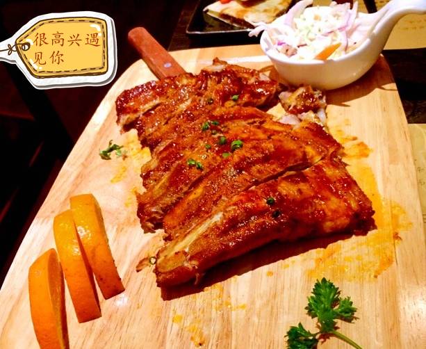 纸牌屋肋排,有两种口味:原味和BBQ,味道都属于偏甜的。肋排烤的火候恰到好处,刚好能用刀叉脱骨~