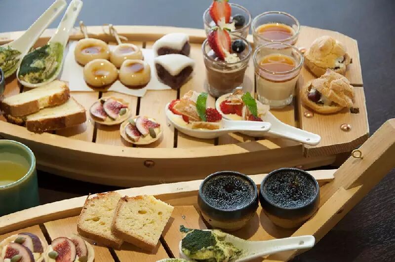 惊喜还在后面! 吃完了咸点,穿着和服的服务员会为你端来一船的甜点呀!