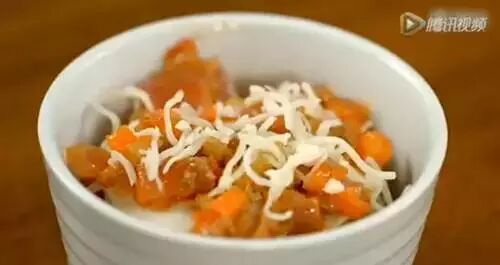 2、碗中刷入少许油,放入饺子皮,放入馅料,加少许奶酪