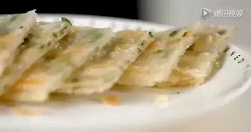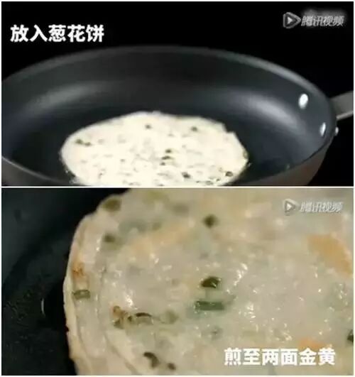 4、平底锅内放油烧热,放入葱花饼,煎至两面金黄,切块食用