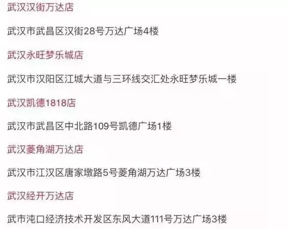 地址:武汉市各大分店