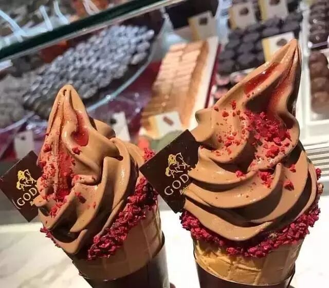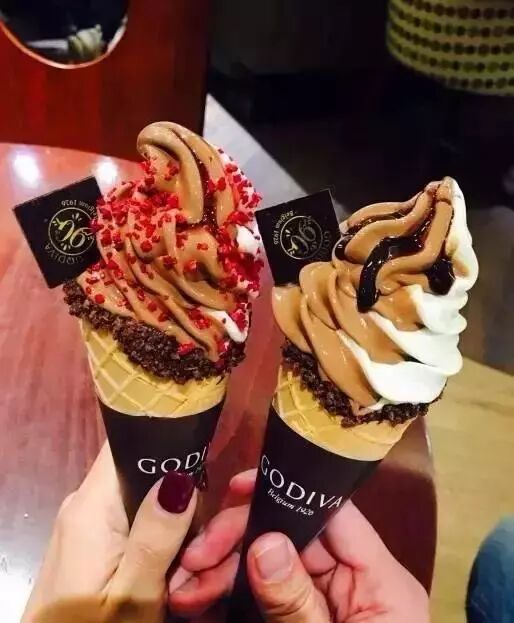 作为巧克力界的爱马仕,冰淇淋界的劳斯莱斯,Godiva的巧克力也许会舍不得买,但是甜筒咬咬牙不少人还是会买的。