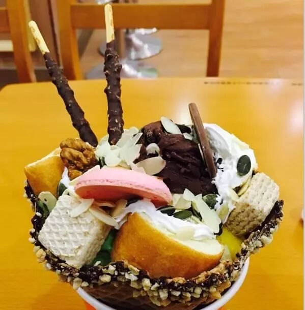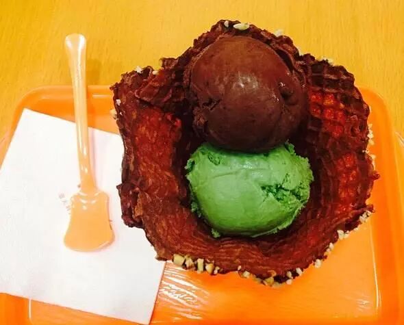 据说这是来自意大利,还是吃了不会胖的冰淇淋,管它呢,爱吃冰的人也不会care这个,他们家有款组合的冰淇淋叫碗贵人,颜值确实还不错,味道也还行。