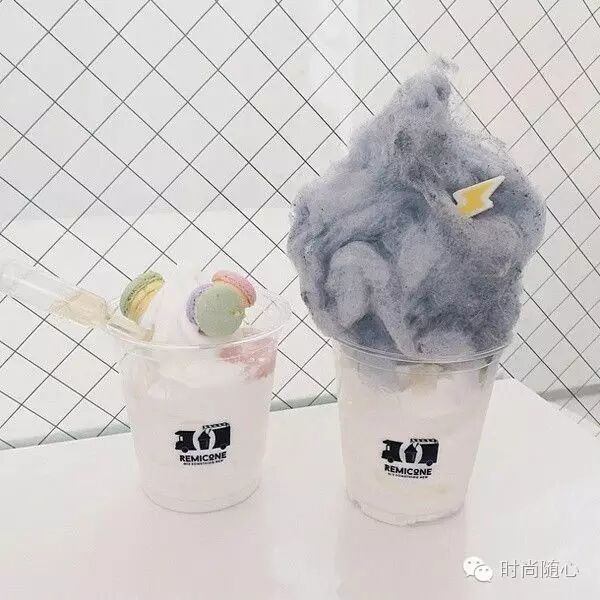 Remicone最牛的棉花糖冰淇淋,叫“乌云冰淇淋”,你看是不是很“乌云”,上面还有一只小闪电,是一个饼干。