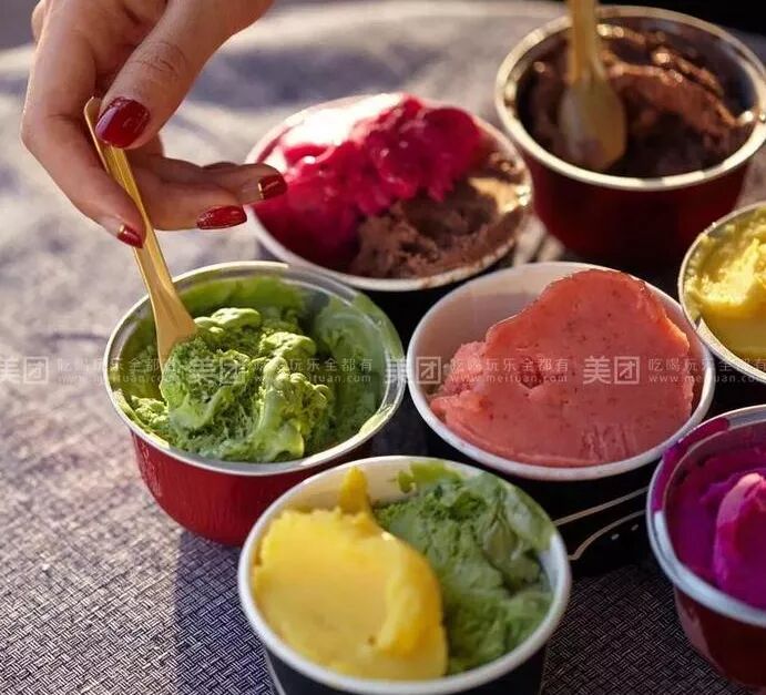 老板不仅打扮很潮,而且很热情。在不知道选什么口味的时候,老板会让试吃,选择困难症再也不怕吃不到好吃的冰淇淋了!
