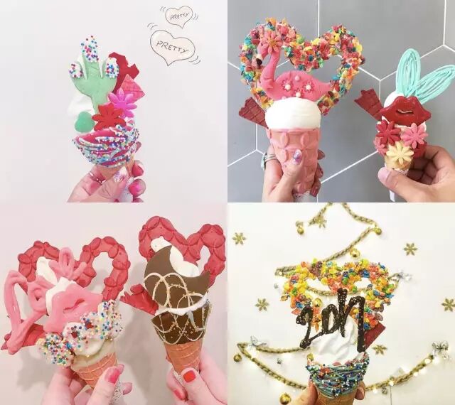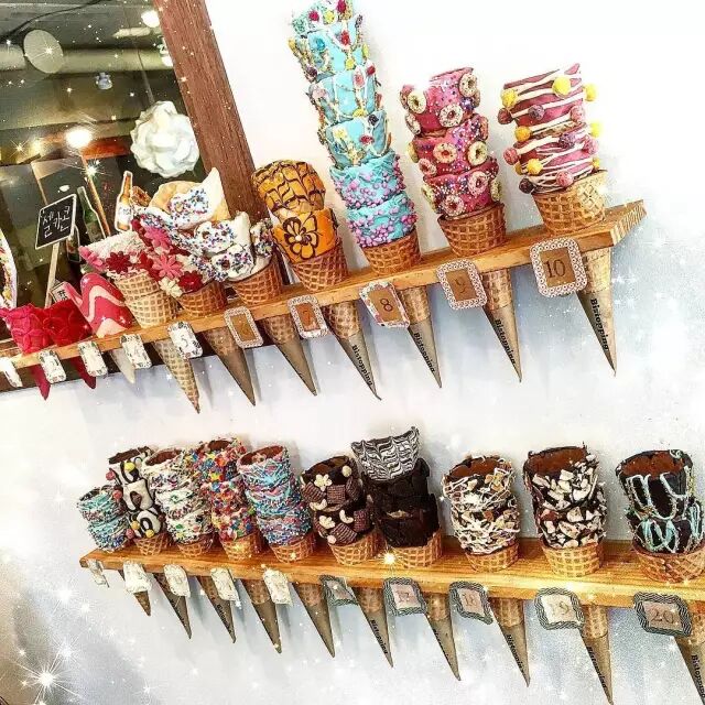 还有个特色是走进店里你会看到各种精心制作的梦幻蛋筒,都来自冰淇淋店员工们的奇思妙想。价格人均6300韩元,不到RMB40块~