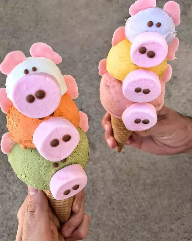 猪鼻子用棉花糖做的,耳朵是能吃的翻糖,猪头还可以选择不同口味。