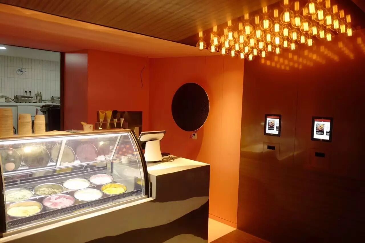 暖光洒满整个店铺,大理石和实木的混搭绝对让这个冰淇淋店的档次甩其他店几个档次!连音响设备都动用了B&O A9顶级音响,老板绝对不是在卖冰淇淋,而是在宣扬冰淇淋文化啊····