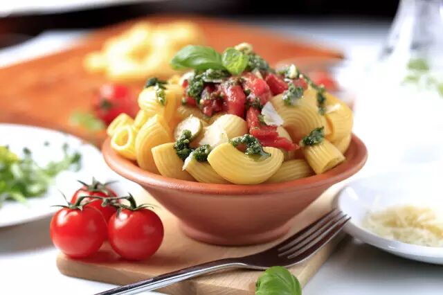 意大利人喜爱面食,优质的小麦做成的长条意面或是通心粉,是意大利美食的灵魂。略带弹性的意面或通粉,包裹在饱满的酱汁之中。搭配着风味不同的酱汁,亦可产生出千万种滋味的变化。玄小武特推:榄油罗勒酱通粉,清新的罗勒酱,带着独特的阳光感觉。