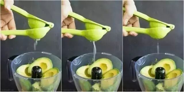 1、鳄梨去皮去核留肉,青柠榨汁,果皮留用。