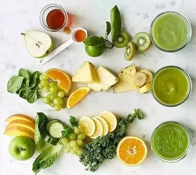 1个苹果、2杯葡萄、1个柠檬、2勺蜂蜜、1个鳄梨、1个甘蓝、1个西葫芦、1杯水