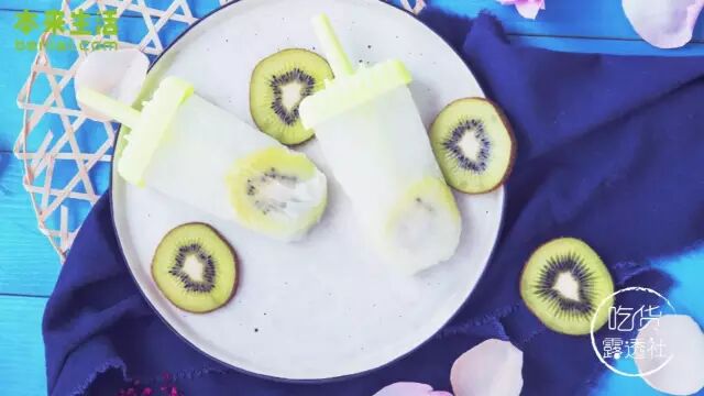 ➤ 制作方法:将奇异果切片放入模具中,倒入椰子水,插入冰棍杆放入冰箱冷冻;