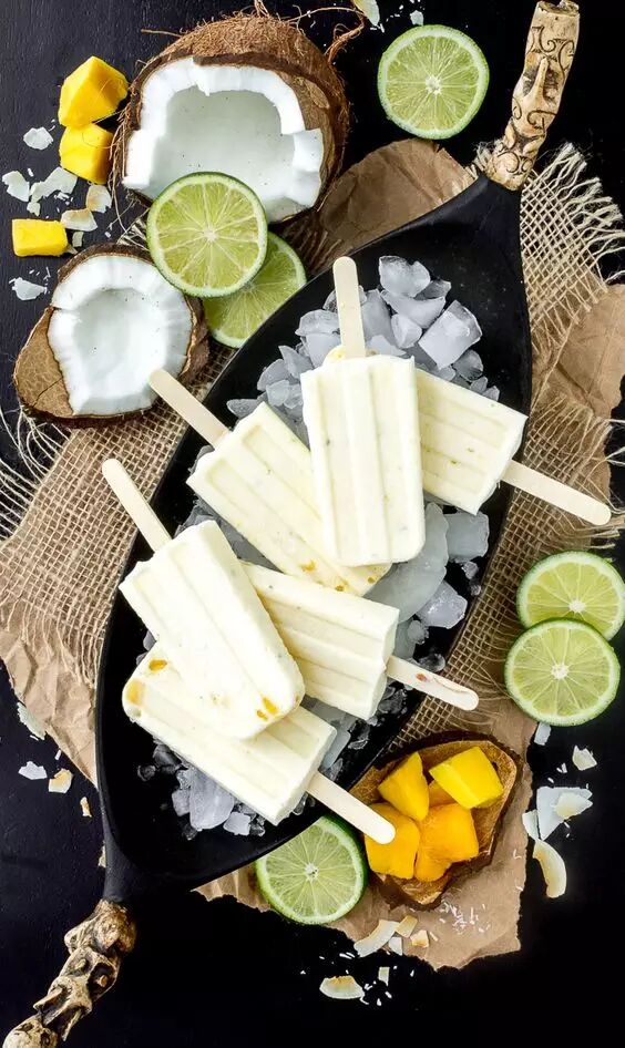 小孩子喜欢明亮的色彩,白色的椰奶跟黄色的芒果相间的冰棒,孩子看到的一眼就会很喜欢~