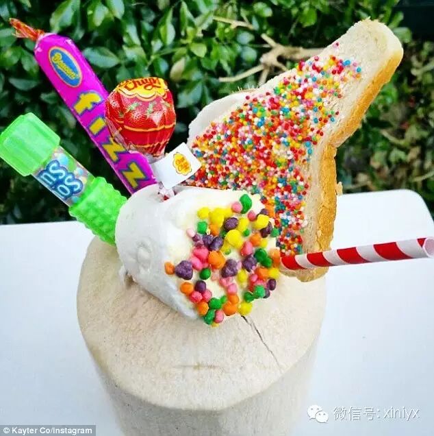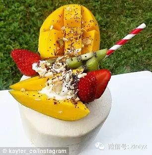 你没看错,白白的就是椰子,这创意绝了!赶脚什么都可以往上面放啊……