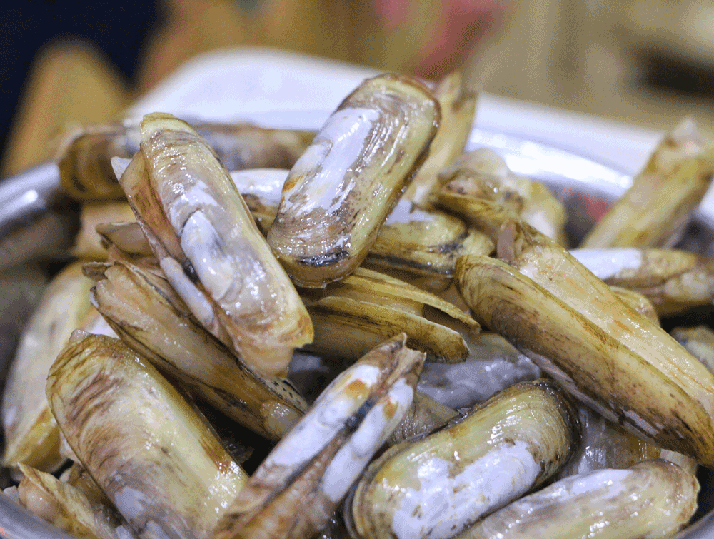 感觉和花甲是一个类型的,也是吃里面软嫩的肉。鲜活的蛏子里面容易积沙子,在炒制之前,还要“杀”蛏子,破开蛏子后挤出泥沙,这样在吃的时候,就不会有泥沙感了。