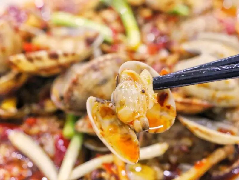 香辣的味道和鲜嫩的花甲融合在一起,爆炒也没有让花甲失去鲜嫩的感觉,汁水也是非常充足。