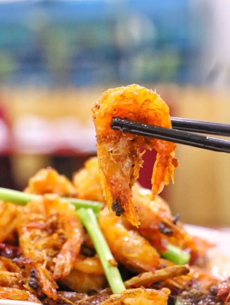 如果用死虾炒出来的虾子,虾肉吃起来没有弹性,而且虾头很容易掉。香辣的口味,外面裹着一层酥脆的壳,里面有辣乎乎的雪白虾肉。