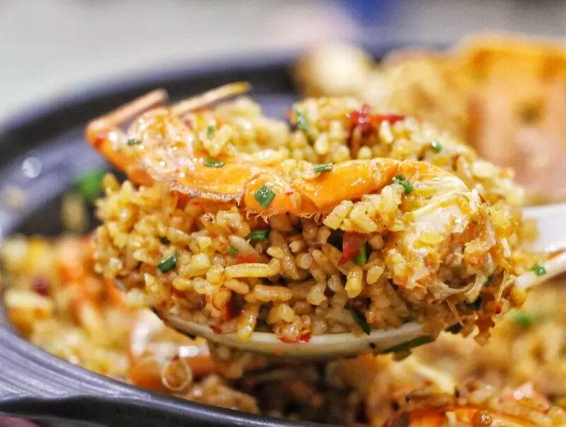 这个是比较独特的,螃蟹味完全被炒饭吸收掉,没有味道的白米饭反而可以完美呈现出螃蟹和辣椒的融合,喜欢吃宵夜炒饭的小伙伴一定不要错过这样的海鲜炒饭!