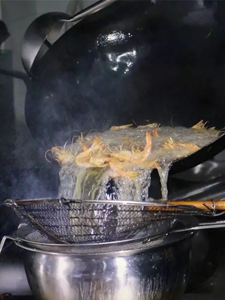 热锅,下油,炸虾,虾子迅速的在油锅里面过一道,使得虾子被炸制外酥。炒制底料,搭配辣椒,盐,花椒等作料,随后和炸好的虾一起翻炒,出锅!