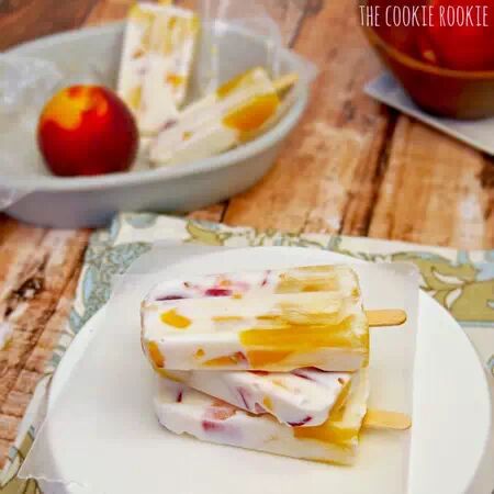 材料:两个桃子(去皮切小块)、1.5杯香草味Greek Yogurt、1.5杯蜜桃果汁