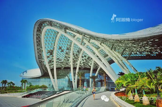 免税店里集免税购物、有税购物、餐饮娱乐、文化展示于一身,是中国免税史上汇聚国际顶级品牌最多、档次最高的大型免税购物主题商场。远远看去,他的建筑设计犹如绽放的海棠花,逐渐展开的外立面勾勒出灵动的曲线,营造了生机勃勃的商业氛围。