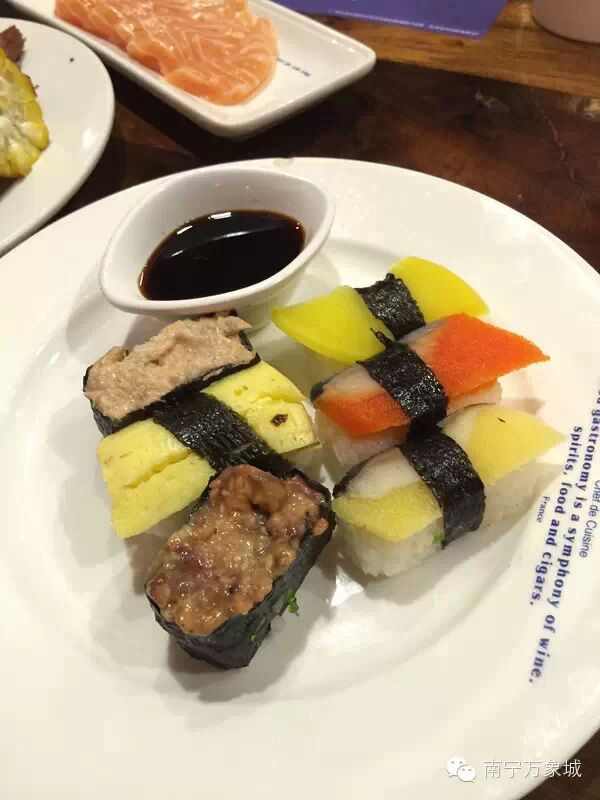 团购点评对寿司的评价不高,我们挑了6个品种,都尝试了。新鲜度还是有保证的,就是寿司米稍逊于专门店。不过这不是寿司专门店,不能要求太多,爱吃不吃吧。