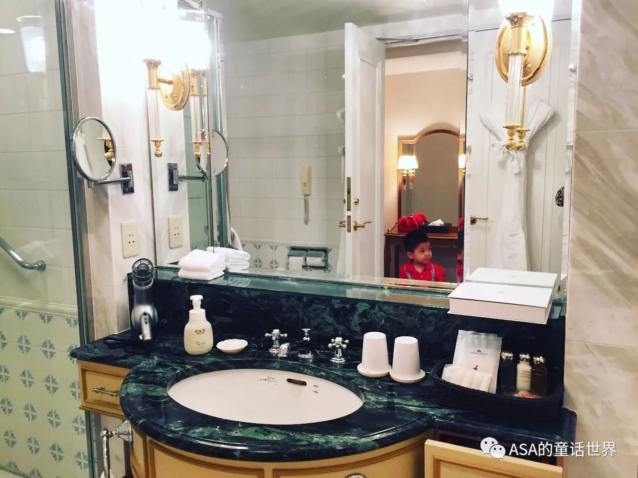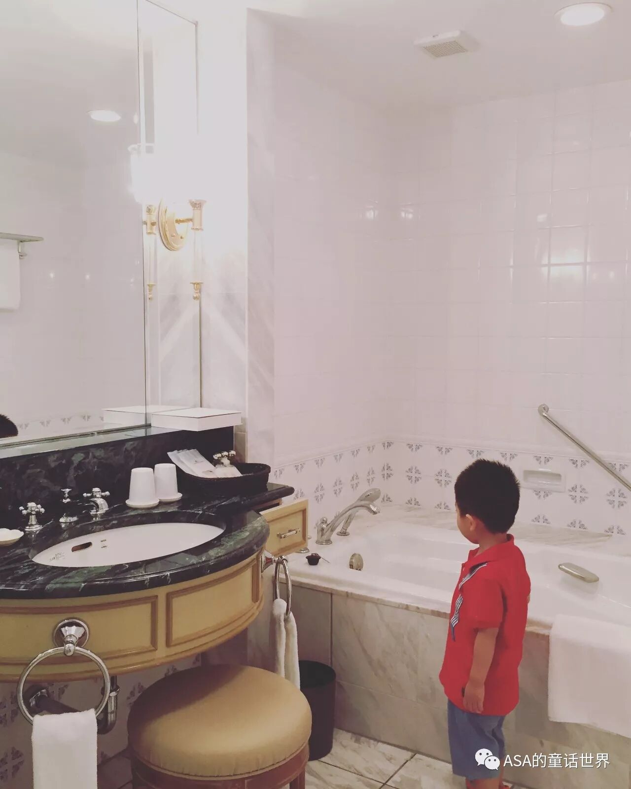 浴室也挺大的,晚上可以一家人泡澡了。听爸爸说他上一次来东京住的酒店,浴缸特别小,而且是正方体的,稍微胖一点的坐下去就再也起不来了,也不知道是真的假的。