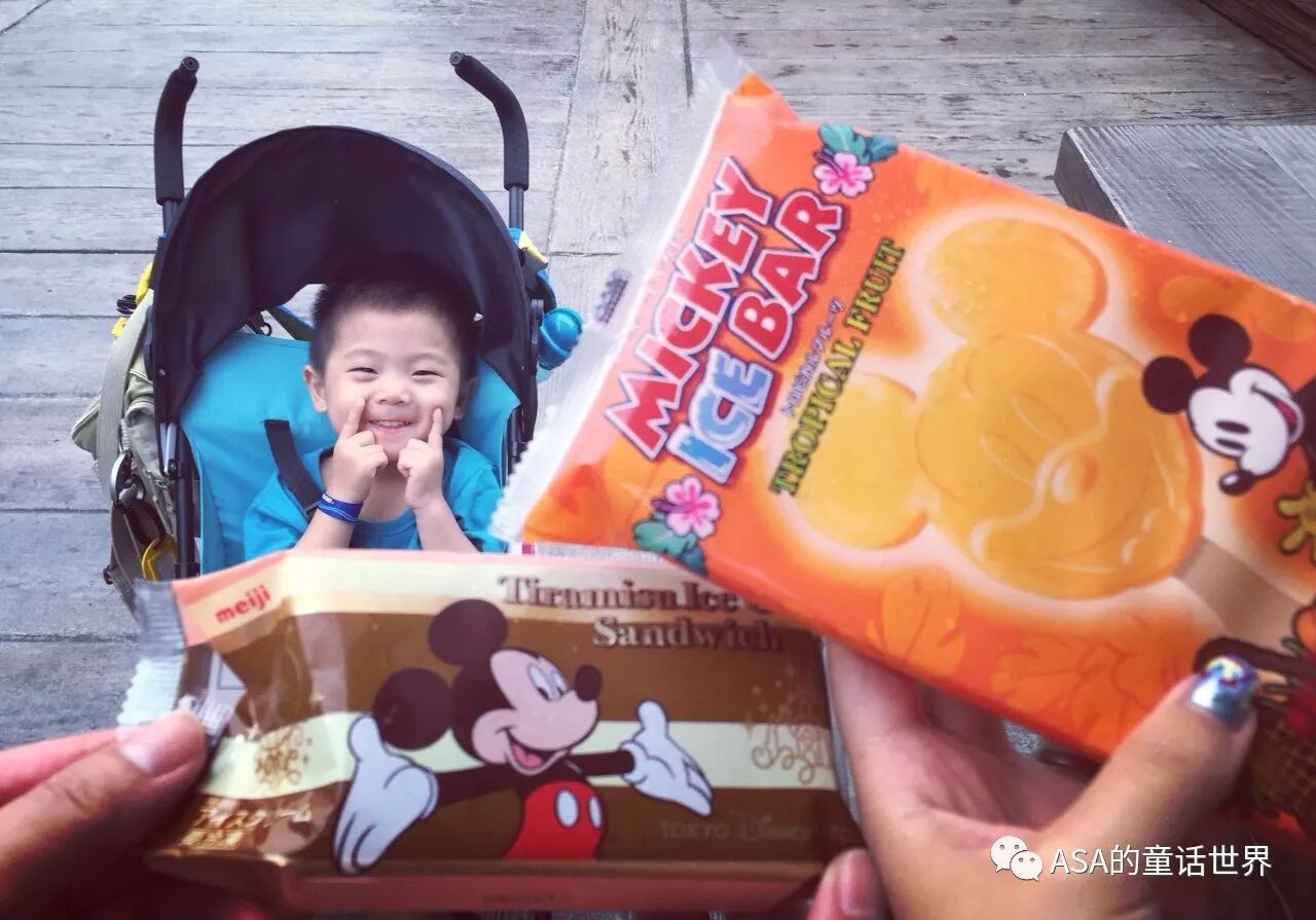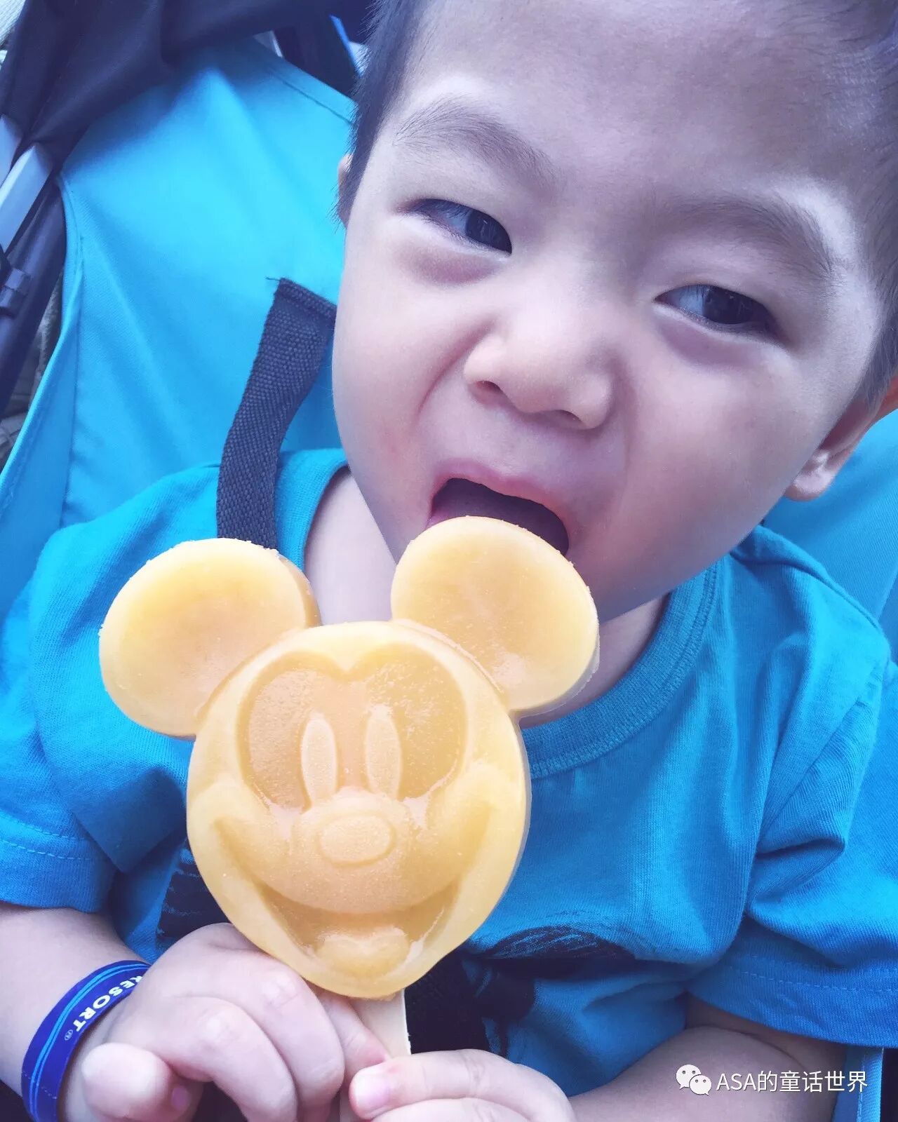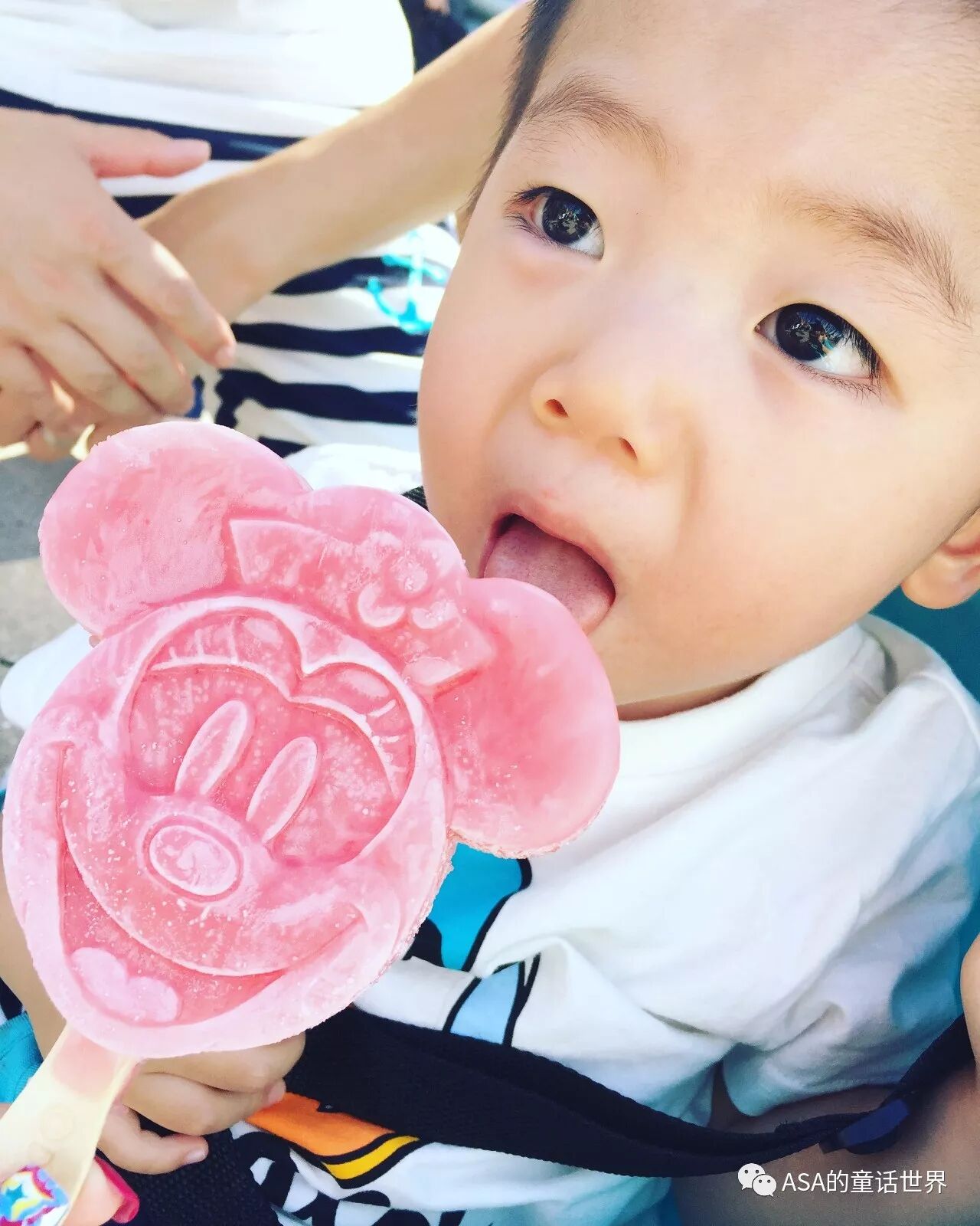 热了就再来吃迪士尼限定的冰淇淋吧。为了吃到嘴,配合妈咪拍张照,假笑我也要忍下来!