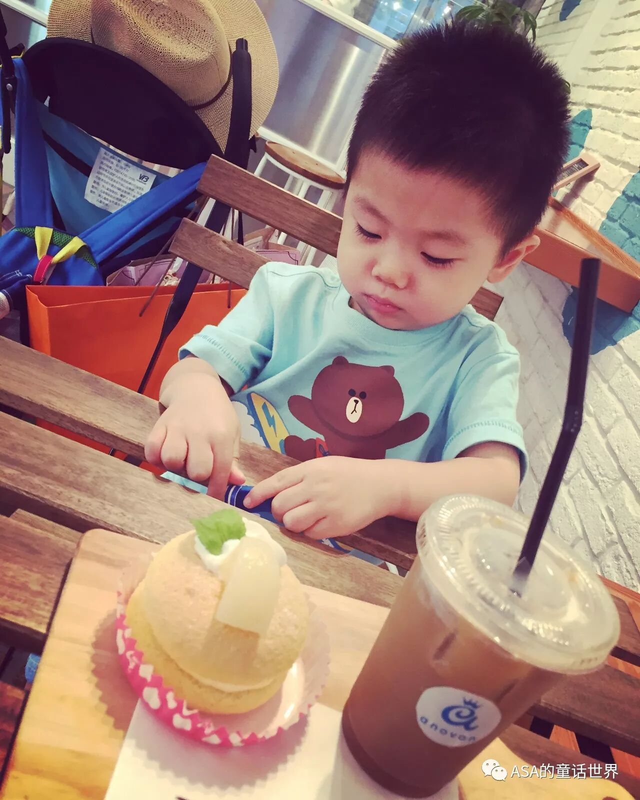 逛了一天还是挺累的,吃个甜点开心一下吧!然后拍完这张照片,妈妈说,后半程我又睡着了,被粑比一路抱回了酒店!我已经很努力地倒时差了~谢谢~