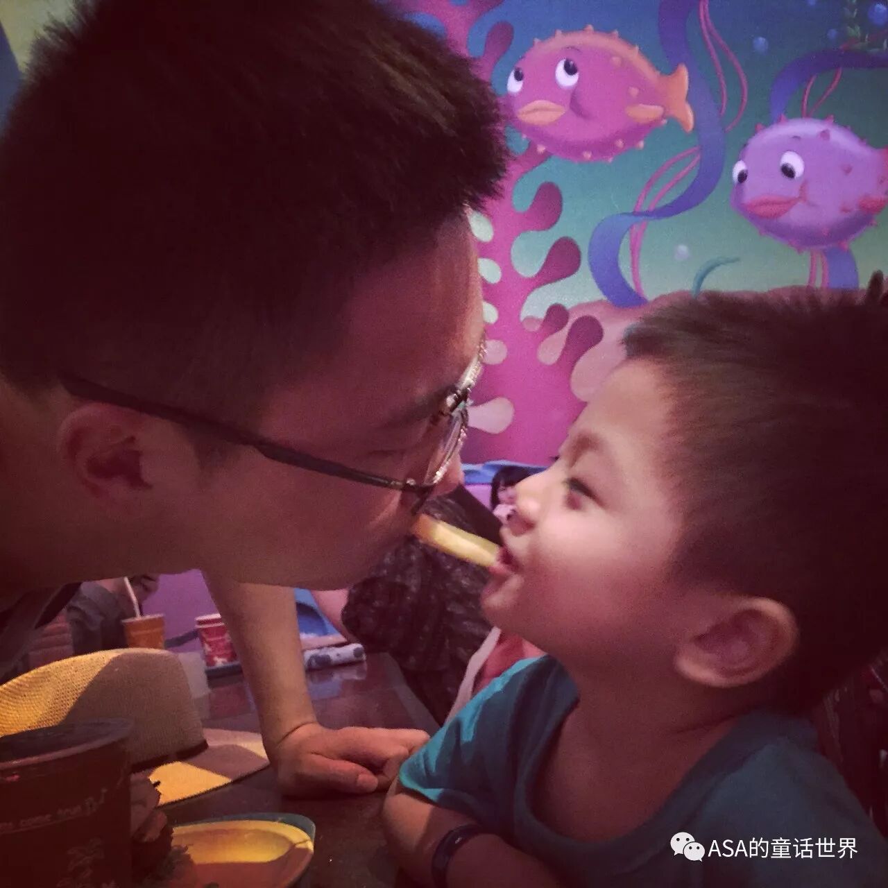 午餐是在小美人鱼宫殿吃的,粑比说他要模仿鱼儿喂食,我感觉我被骗了~