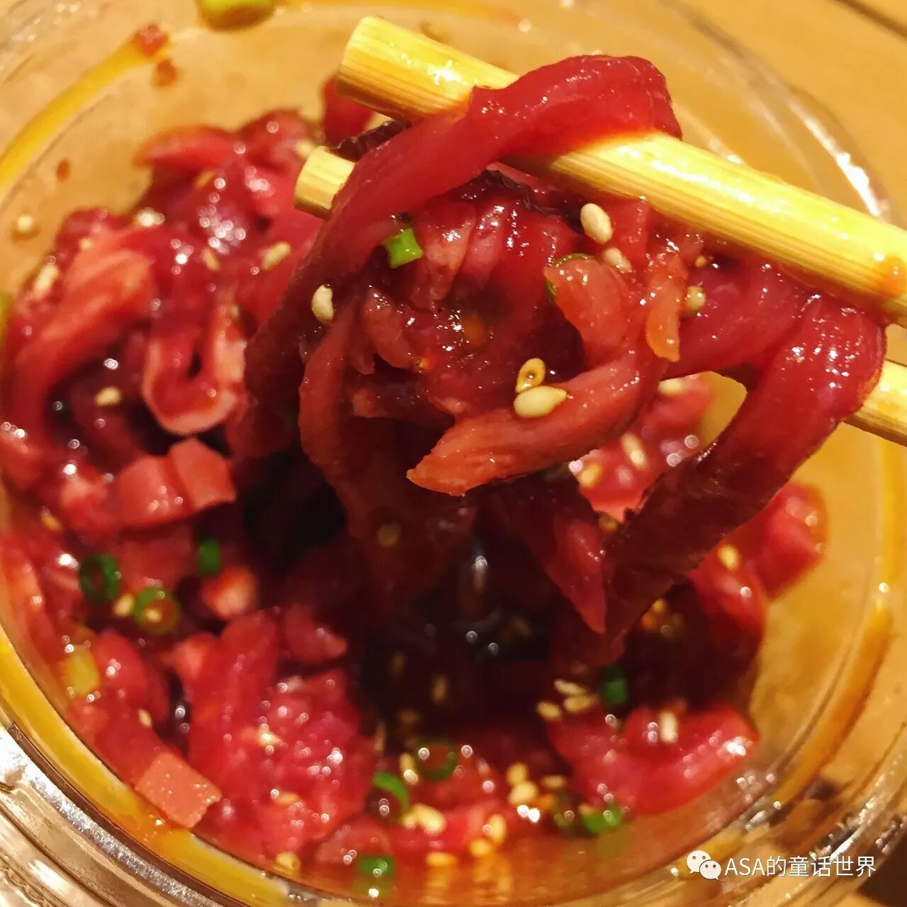 这是生肉,日语叫“ユッケ”,听妈妈说吃完了很美容的哦~