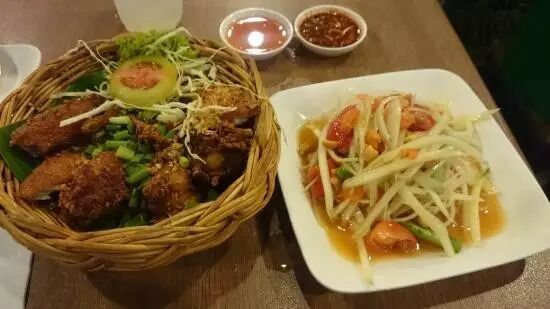 被CNNGO评为最佳青木瓜沙拉专卖店,主营各式青木瓜沙拉,比如蟹仔青木瓜沙拉、炸虾碎花生青木瓜沙拉、咸鱼青木瓜沙拉等等,不过更确切的说这里经营的是泰国东北菜。推荐菜:烤猪颈肉、酸辣汤、炸鸡等都是必点菜品酸辣猪软骨汤、青木瓜沙拉配糯米饭、销魂的鸡翅。点菜时其实按上面推荐的点就好了,不然就看英文菜单上打星的,一定错不了。