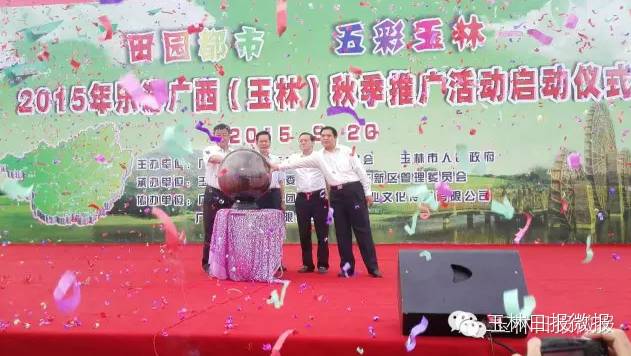 另外,除了在毅德国际商贸城主场的展会外,11:00分在五彩田园会场,2015年乐游广西(玉林)秋季推广活动暨大容山旅游文化节揭幕。