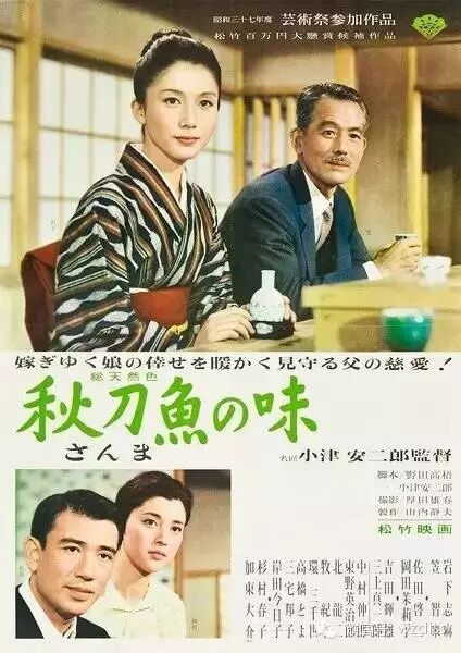 而在《秋刀鱼之味》里,秋刀鱼并没有出现在镜头里,按小津的解释,“秋刀鱼既便宜又美味”,这说的还是日常之美。秋刀鱼虽然在电影里“缺席”,但这部电影的主旨却暗暗藏在了片名的食物中,这不失为