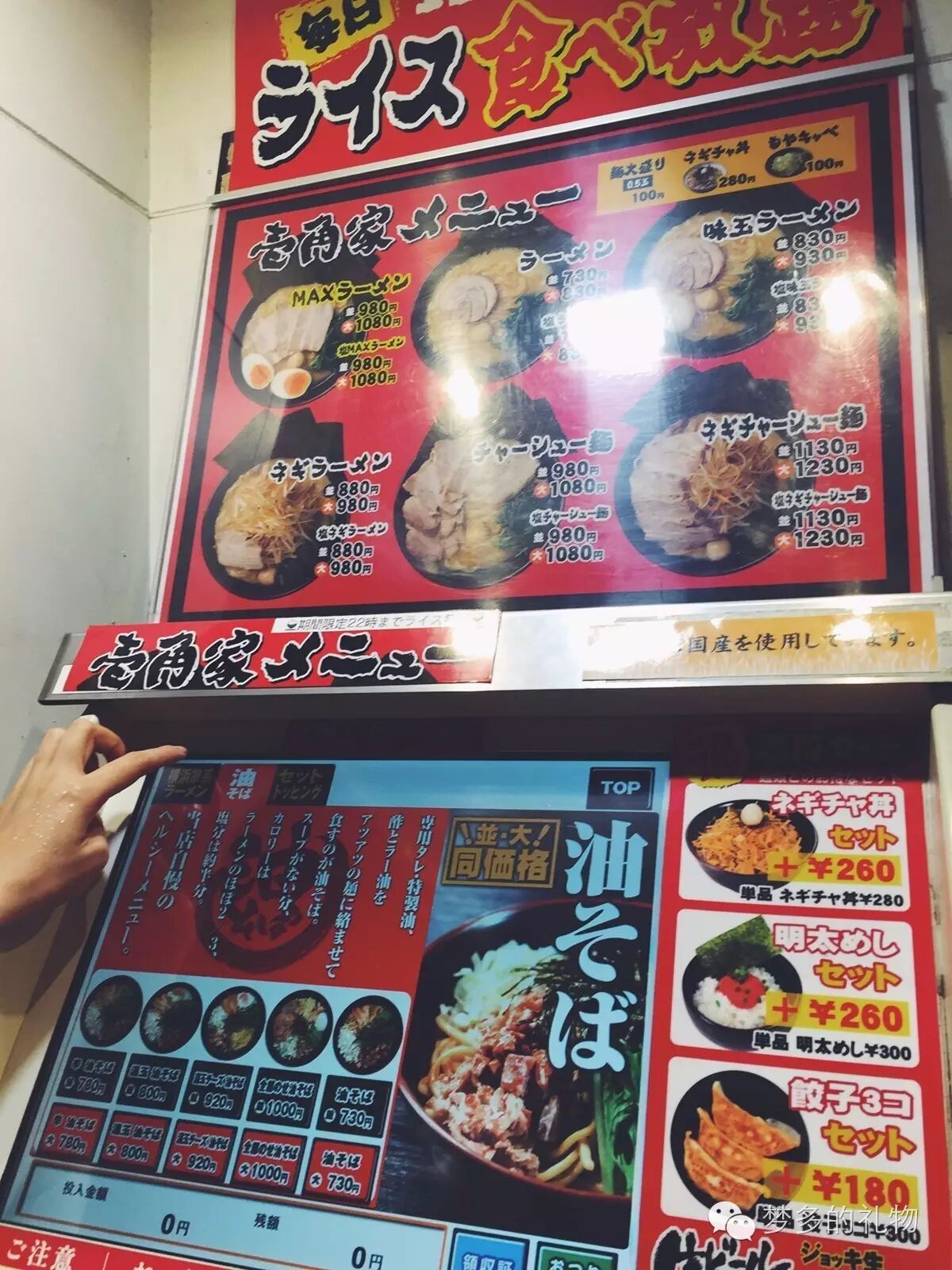 好吧,我们吃得最多的就是拉面,因为走到哪儿都是呢。你会发现日本拉面店人员配置很少,甚至一人打理的都有。反正门前有自动贩卖机,可以省去收银的人力。吃拉面的时候要学会阅读空气,如果没人来收拾的话请吃完端给店员,不然有可能会被吐槽“又是中国人”(在不造听得懂日文的情况下),我们有次就忘记把餐盘拿过去被说了。