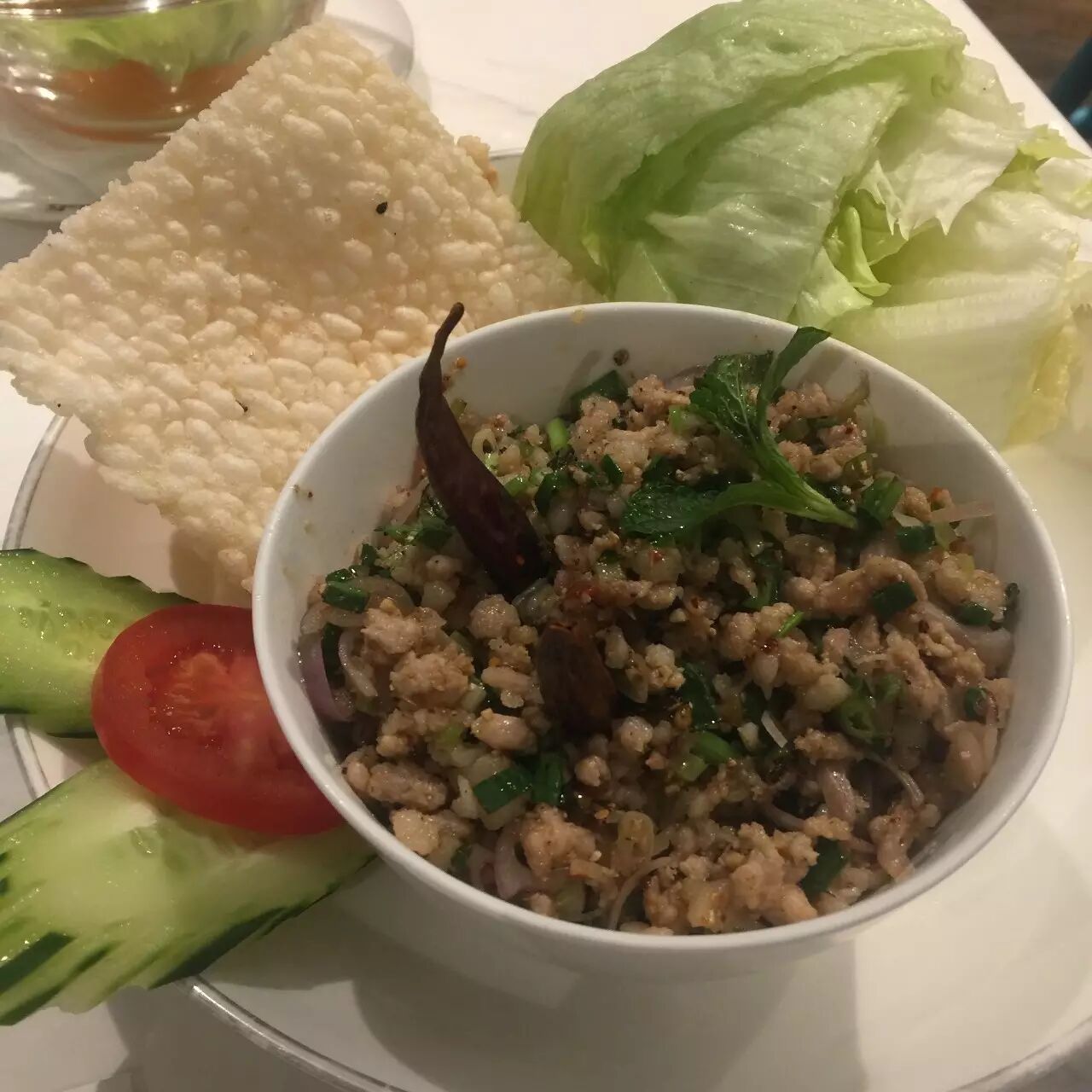 蕉叶旗下的新派东南亚菜。菜单上选择不多,反而饮品和蛋糕还蛮多的,为什么连东南亚口味都要往星美乐那种轻食模式靠拢?味道是我最近吃过泰国菜里面最辣的。炒肉碎好吃,但我个人更偏向偏酸偏甜的口味。蛋糕味道淡淡的,但是千层皮较干,不推荐。