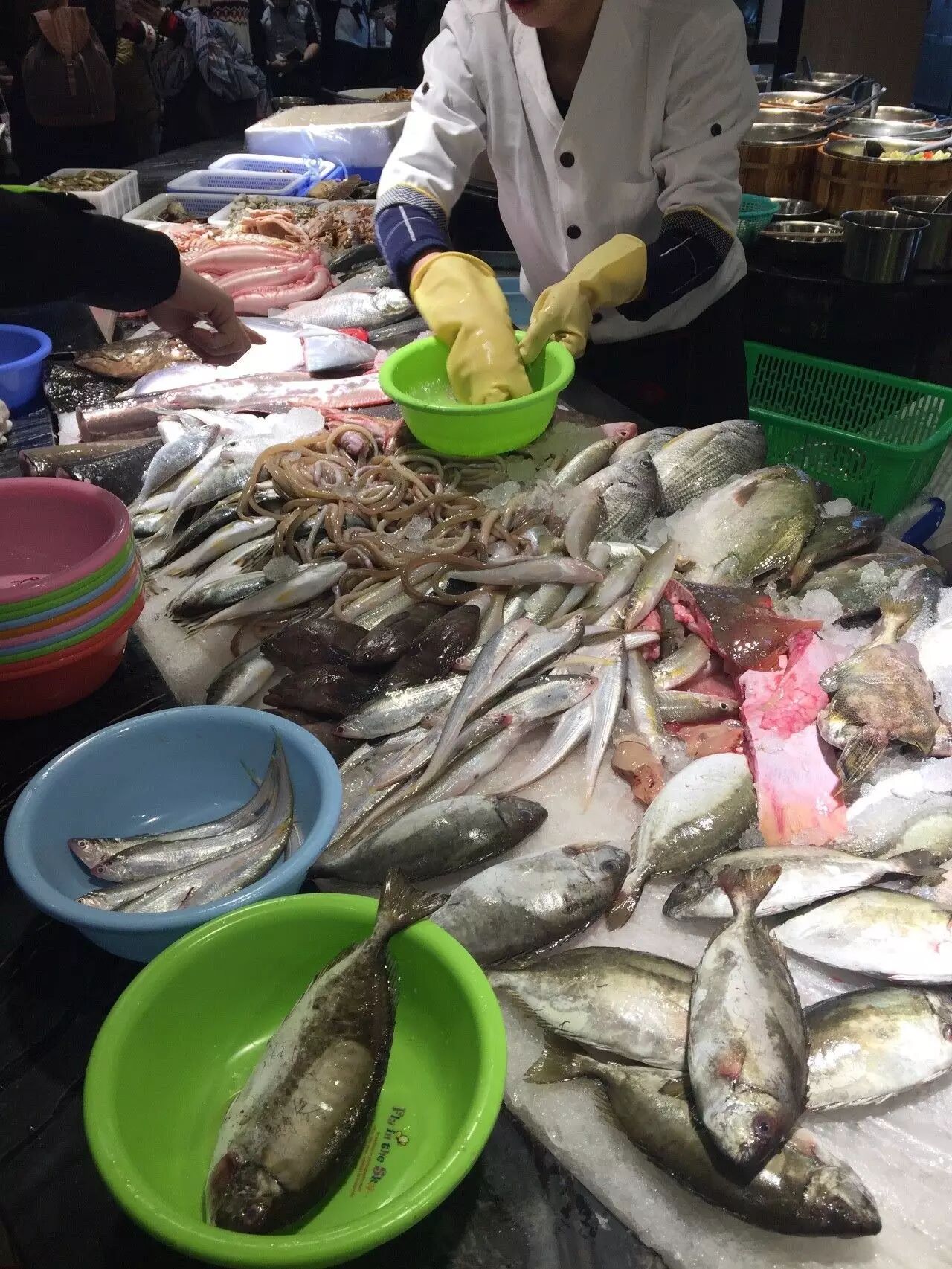 之前吃潮州菜都会特意去燕塘那边的海门鱼仔,现在开了分店在珠江新城,方便了不是一点点。一共有三层,每一层的座位都排到满满当当,居然饭点也要排一个多小时。虽说装修是新的,但是服务和卫生都跟不上,骨子里还是燕岭那个湿哒哒的大排档。鱼台上依旧是我全部都叫不上名字的鱼,味道和燕岭基本没差。就是不要被这个分店的外表给骗了,把它看作是一家大排档会吃得舒心很多。膏烧番薯的味道太腻,还是喜欢六合那个精致的味道。