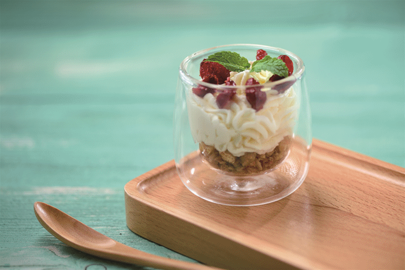 意式奶冻和招牌秘制碧根果是店里的主推茶点,