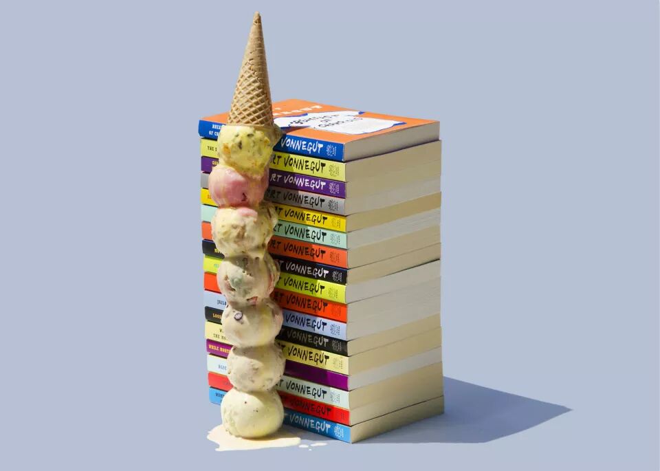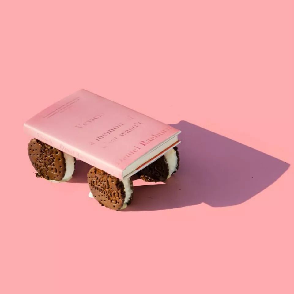 项目叫做Ice Cream book,从2016年5月开始,但是项目发起者至今都不为人知,他们希望保持匿名状态,通过ins账号向大家推荐自己喜欢的书籍和甜品,仅此而已。每一本书和对应的甜品搭配有内在的逻辑关联,比如New Yourk Legs一书搭配两个甜筒,在视觉构建、色彩呼应上和原本的封面设计融为一体,看上去就像两条会行走的腿,十分有趣。