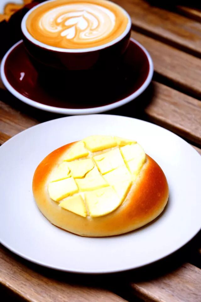 在原味烤包基础上,中间夹了一层芝士。夹的这层芝士可不是拉丝芝士(必胜客常用的内种),而是正儿八经从新加坡进口的安佳芝士后片。就着咖啡一起吃,可谓绝配。到店外国友人们最爱吃的烤包。